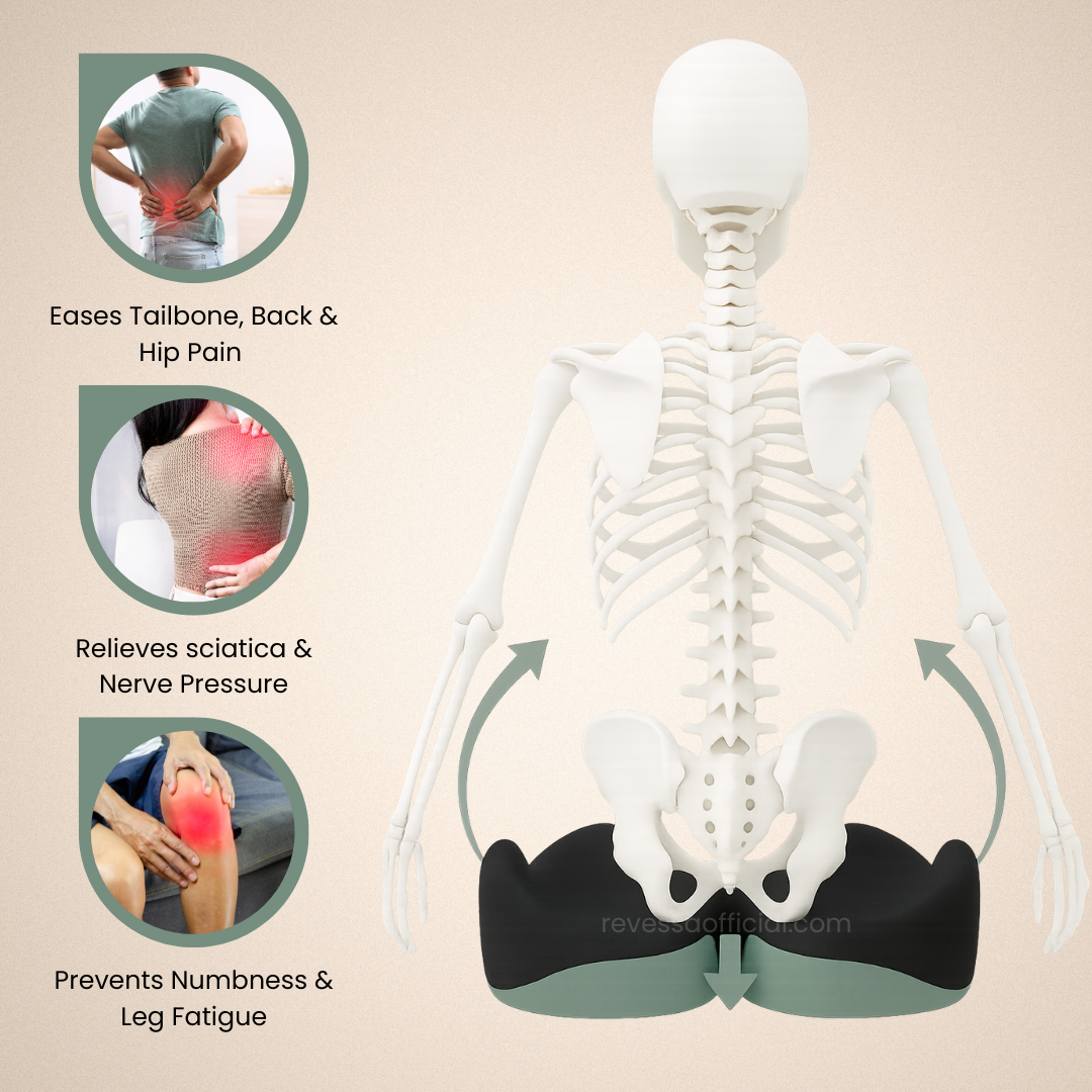 Prolonged sitting can shift your hips and compress your spine—placing strain on your lower back and tailbone.