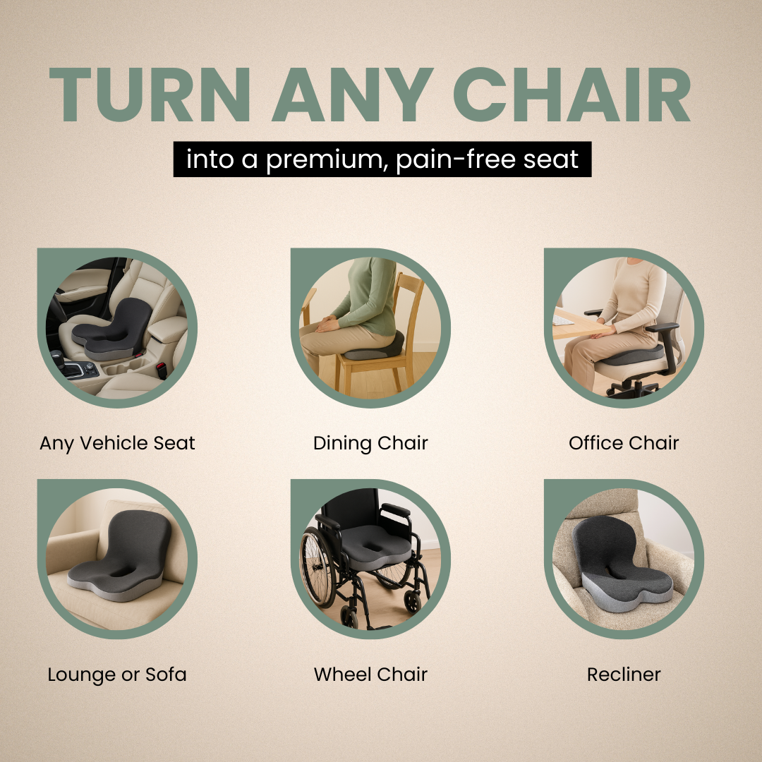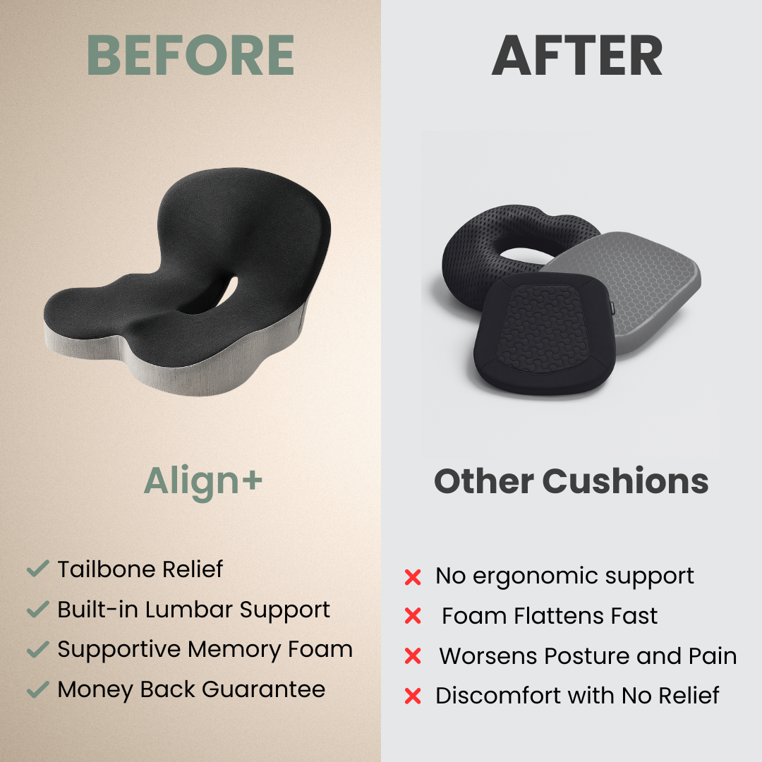 Engineered with precision contour and Align+ memory foam, this cushion delivers targeted support to your lower back, hips, and tailbone.